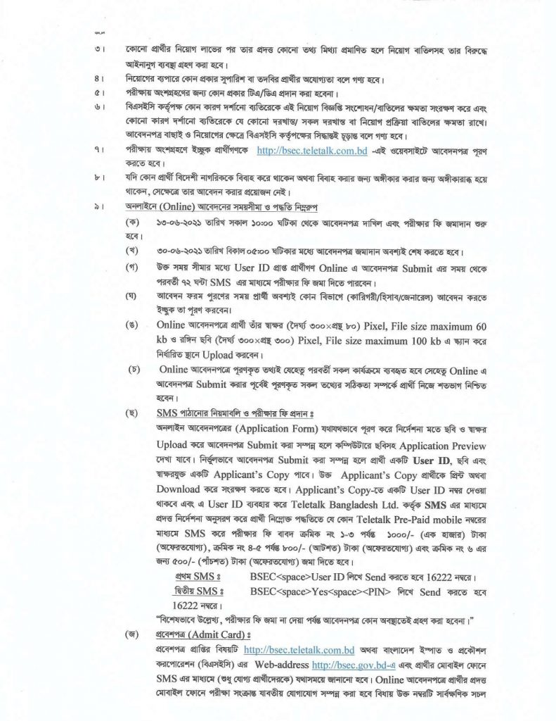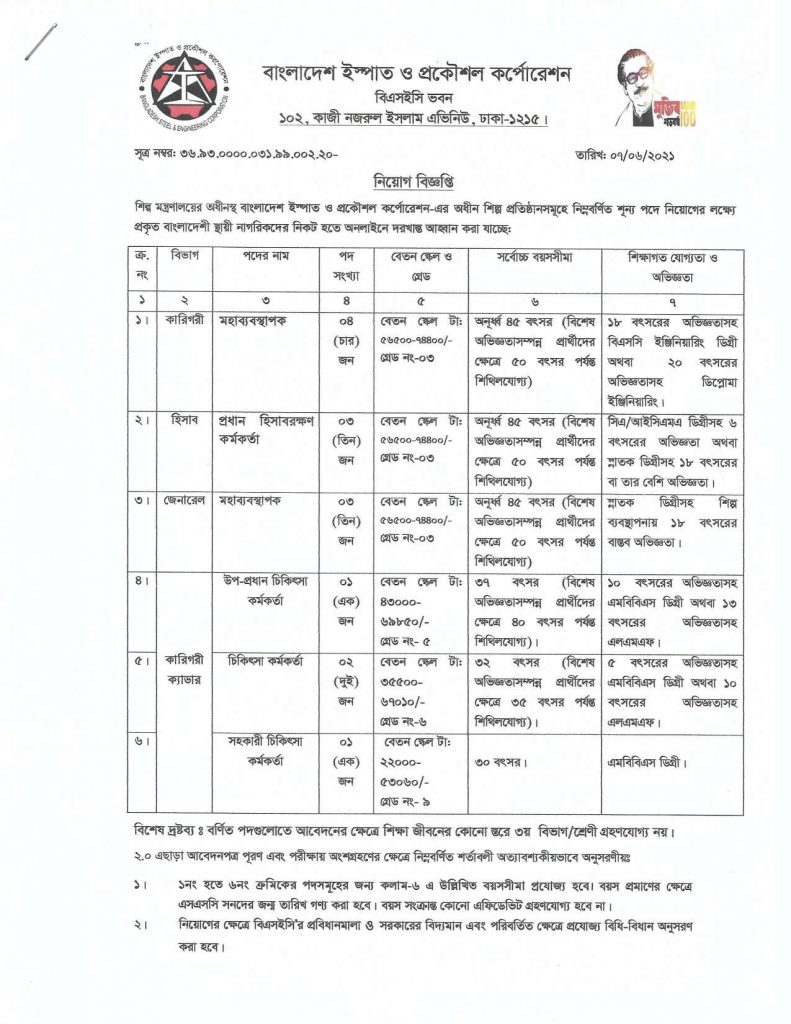 Job Circular for Bangladesh Steel and Engineering Corporation 2021: